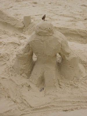 humm....went to the beach, couldn't resist making mounds of sand, and i decided to try sculpting them into statues!!